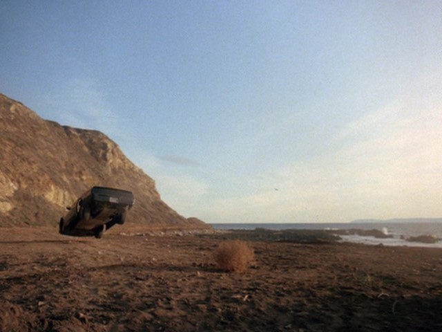 In the back seat of the car, Micki starts to wake up. She overhears the lackeys discussing how they plan to kill her, and attempts to open the door to escape, then fights back by kicking and grabbing at their faces. This causes the car to swerve, and Michael hits the gas to catch up. In the confusion, Micki manages to get the door open and throws herself out of the vehicle; she goes rolling down a steep incline toward the ocean.