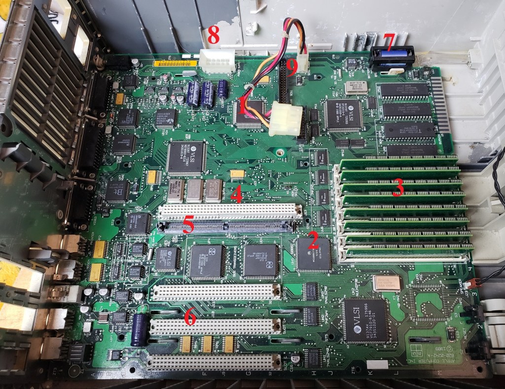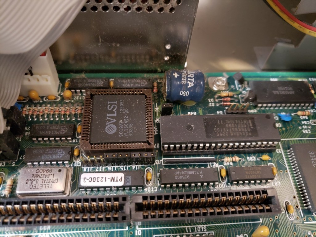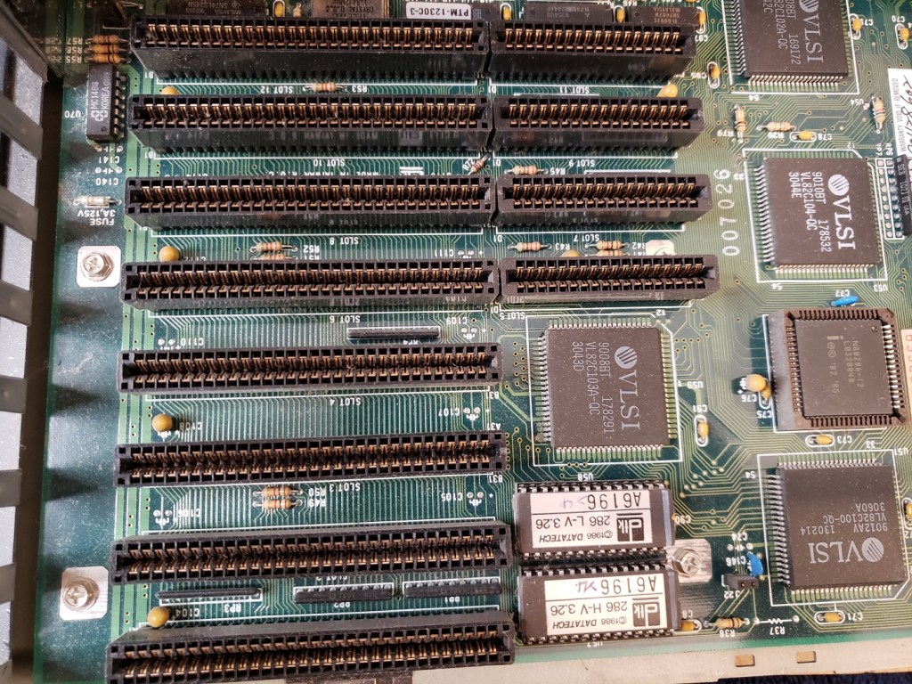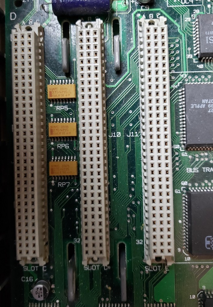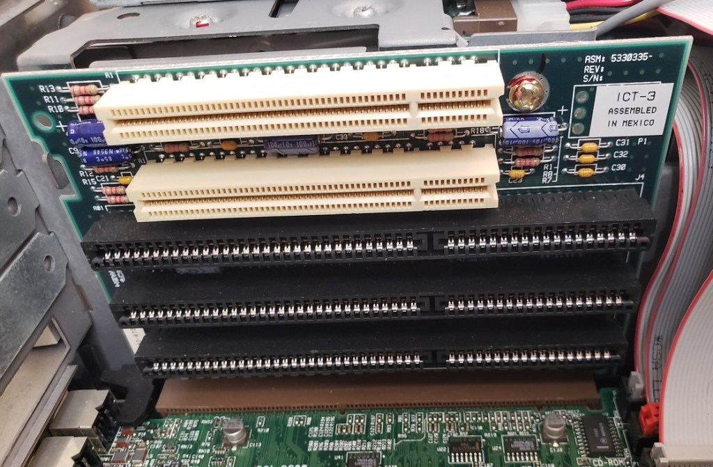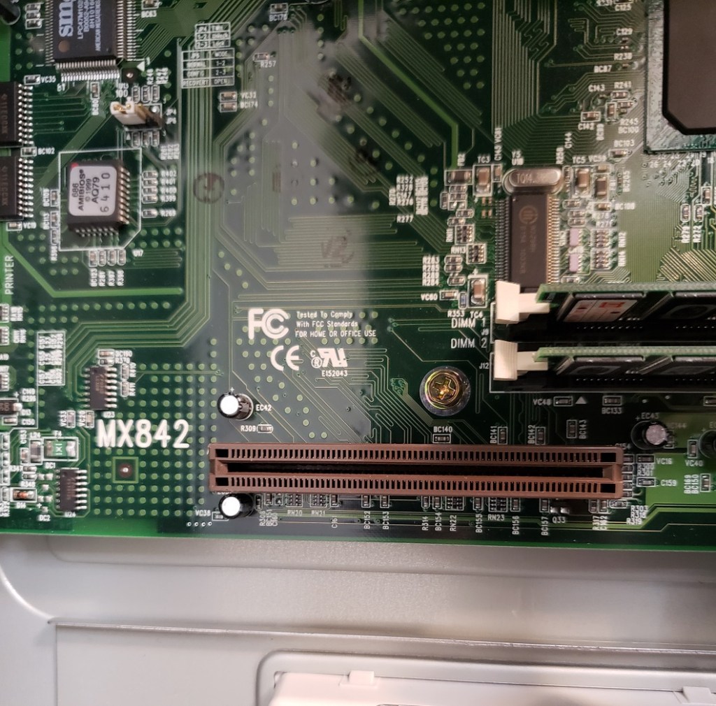2 ) Floppy controller and Modem slots – These small expansion slots, as far as I can tell, only support very specific cards with the slot closest to the right supporting the floppy drive controller card and the slot to the left of it supporting the optional modem card.