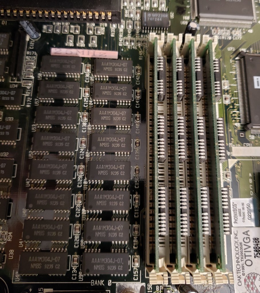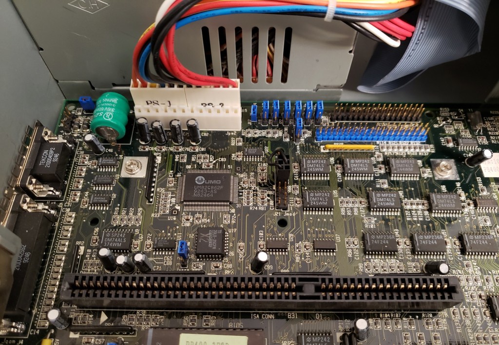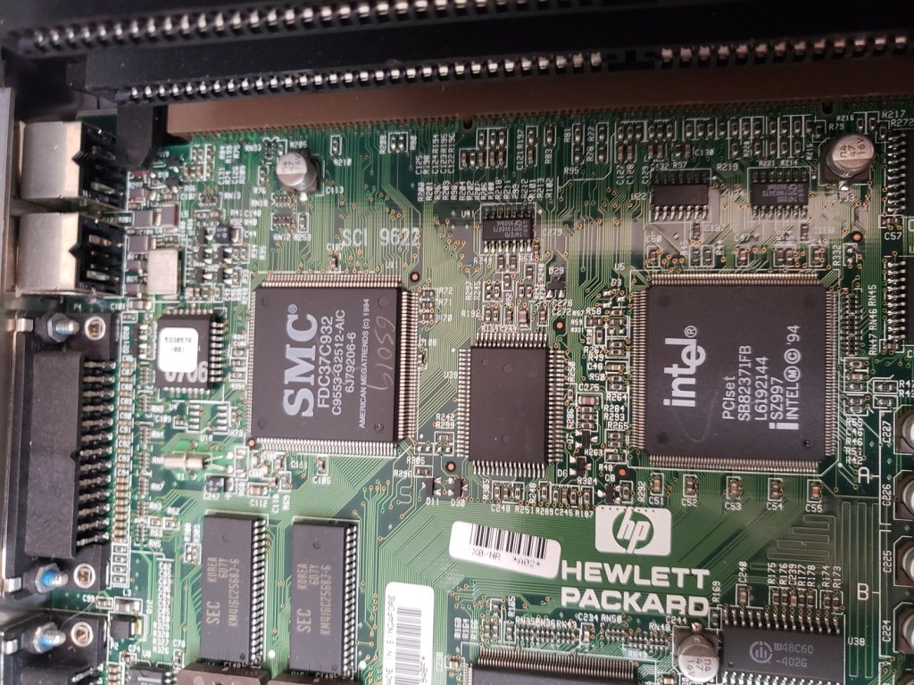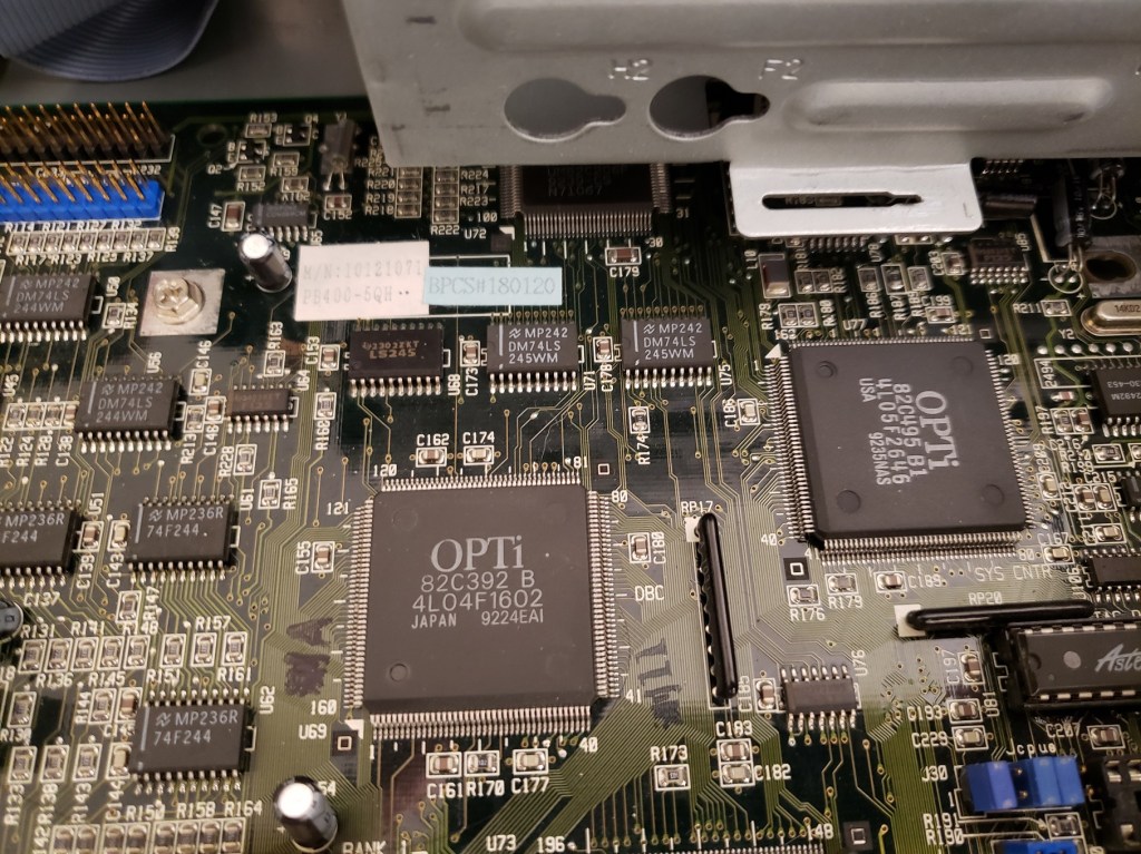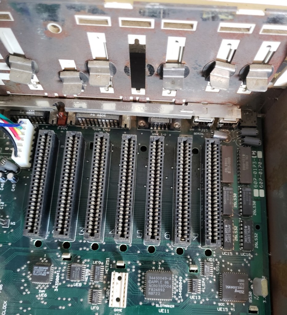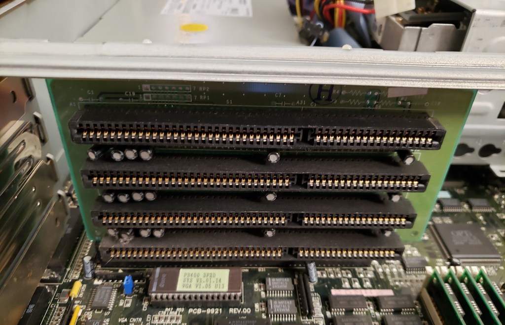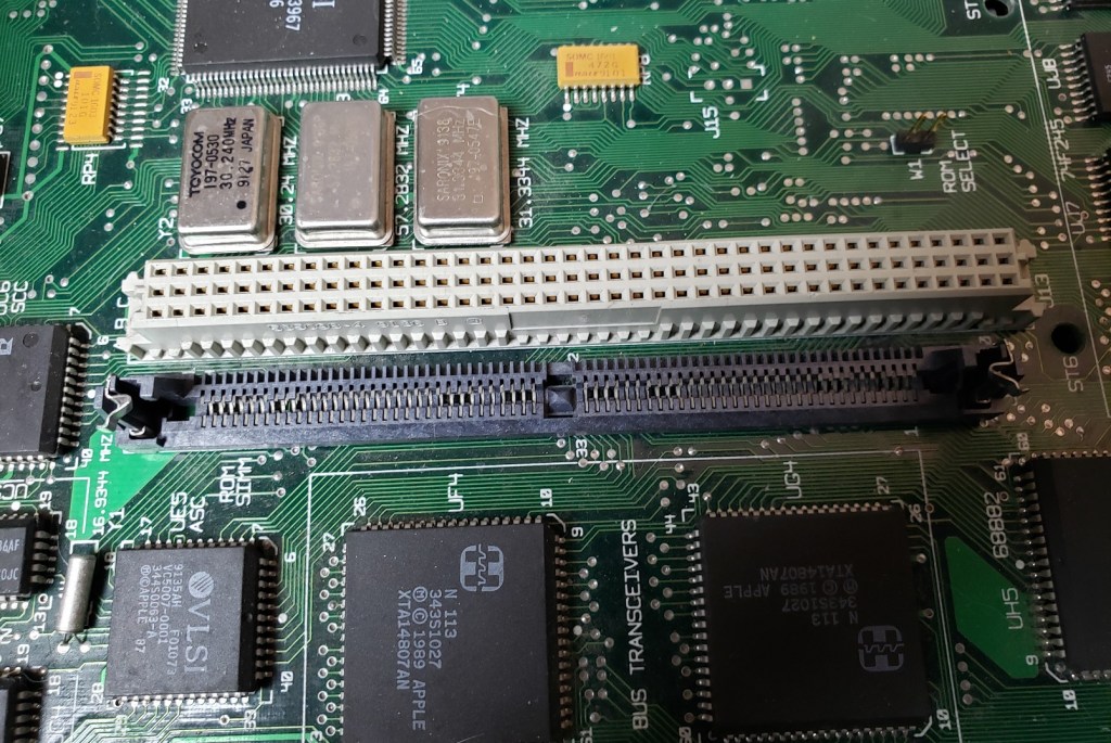 2 ) Floppy controller and Modem slots – These small expansion slots, as far as I can tell, only support very specific cards with the slot closest to the right supporting the floppy drive controller card and the slot to the left of it supporting the optional modem card.