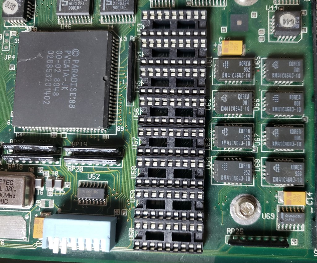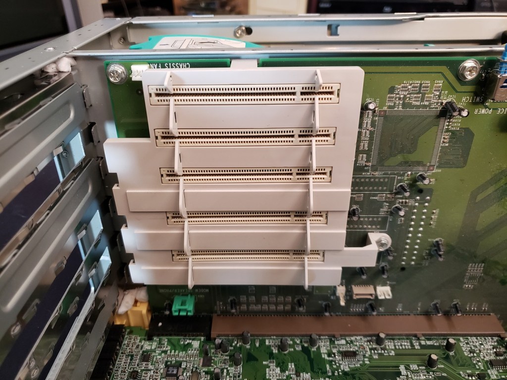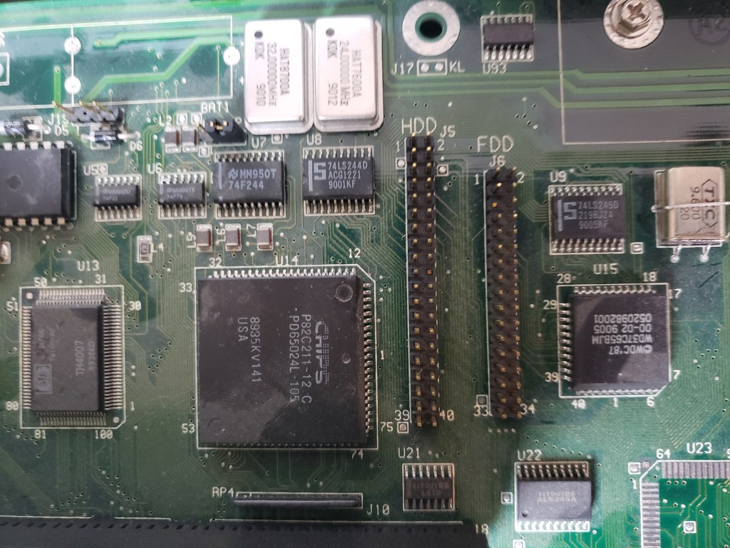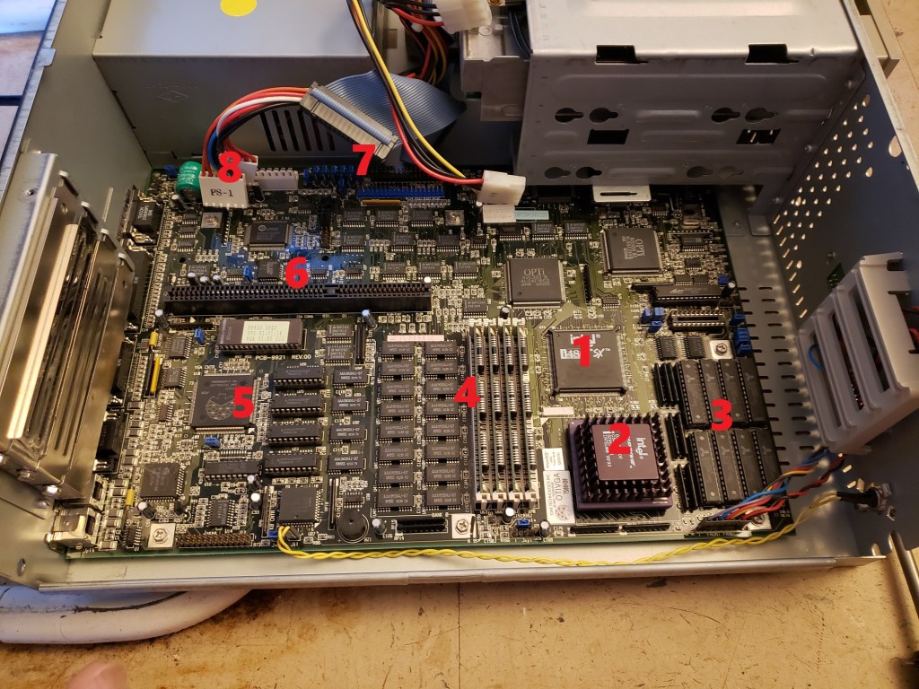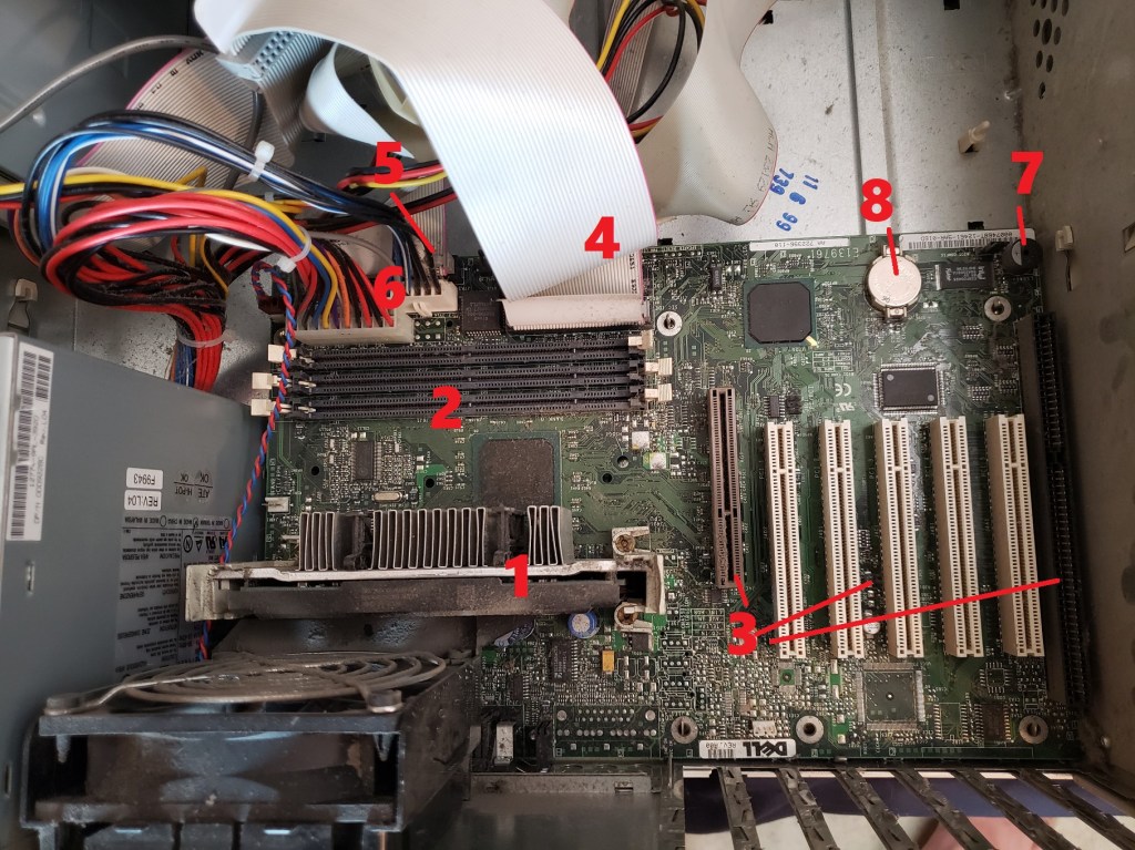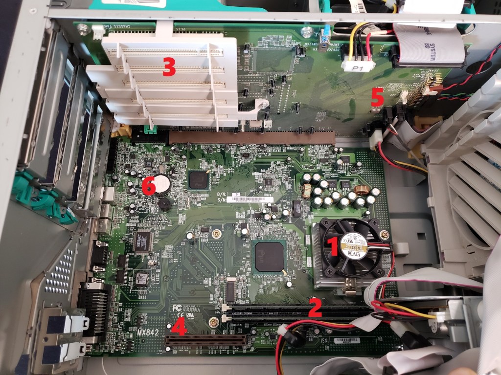 2 ) Floppy controller and Modem slots – These small expansion slots, as far as I can tell, only support very specific cards with the slot closest to the right supporting the floppy drive controller card and the slot to the left of it supporting the optional modem card.