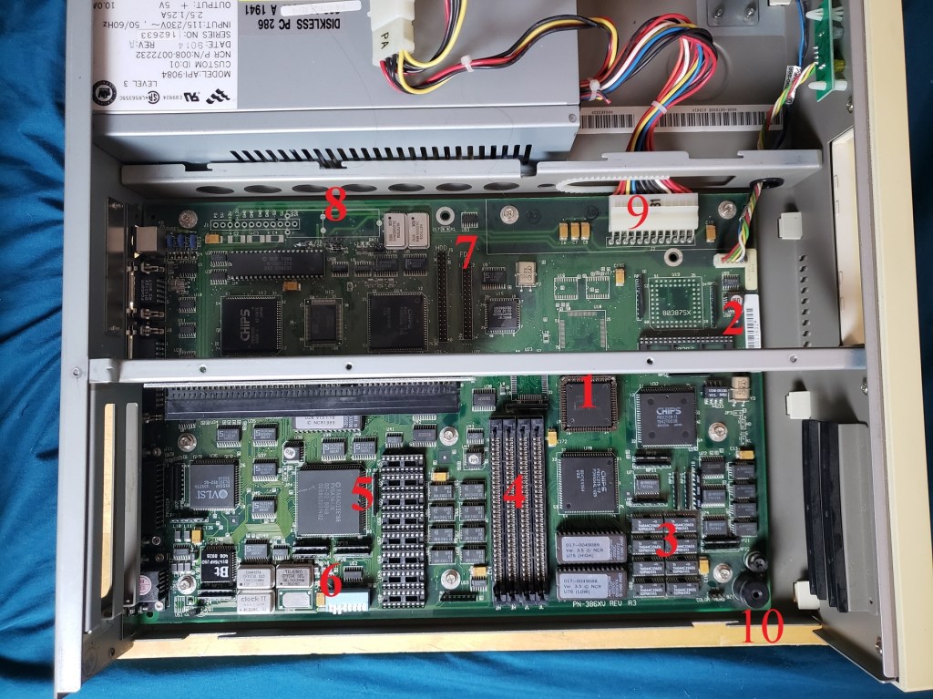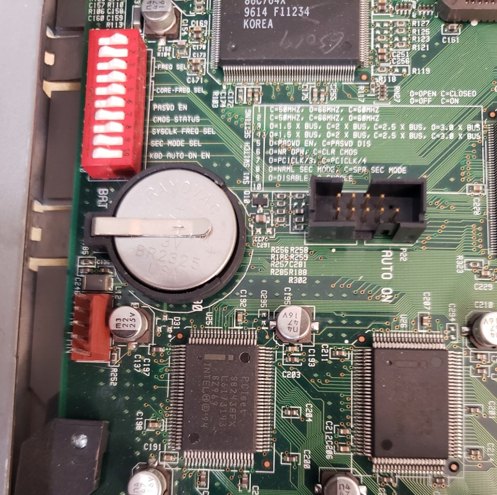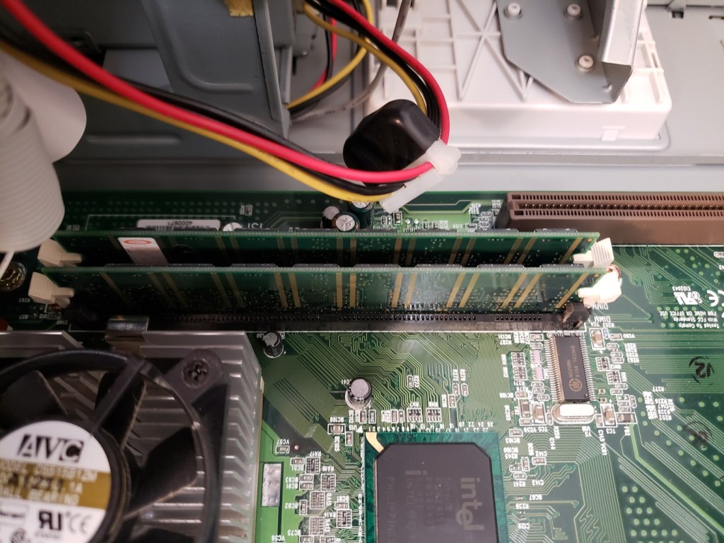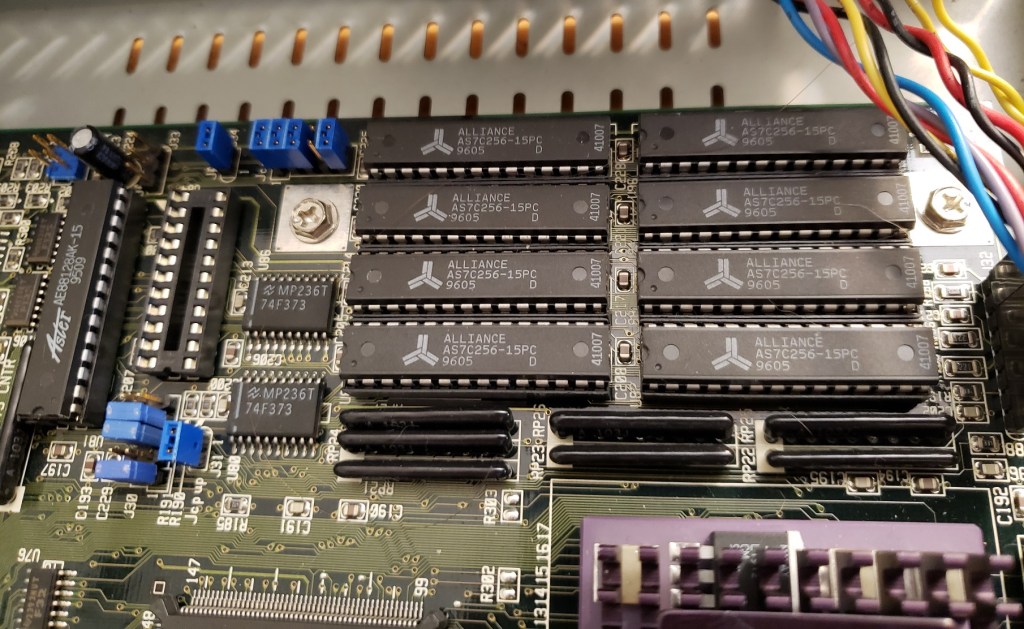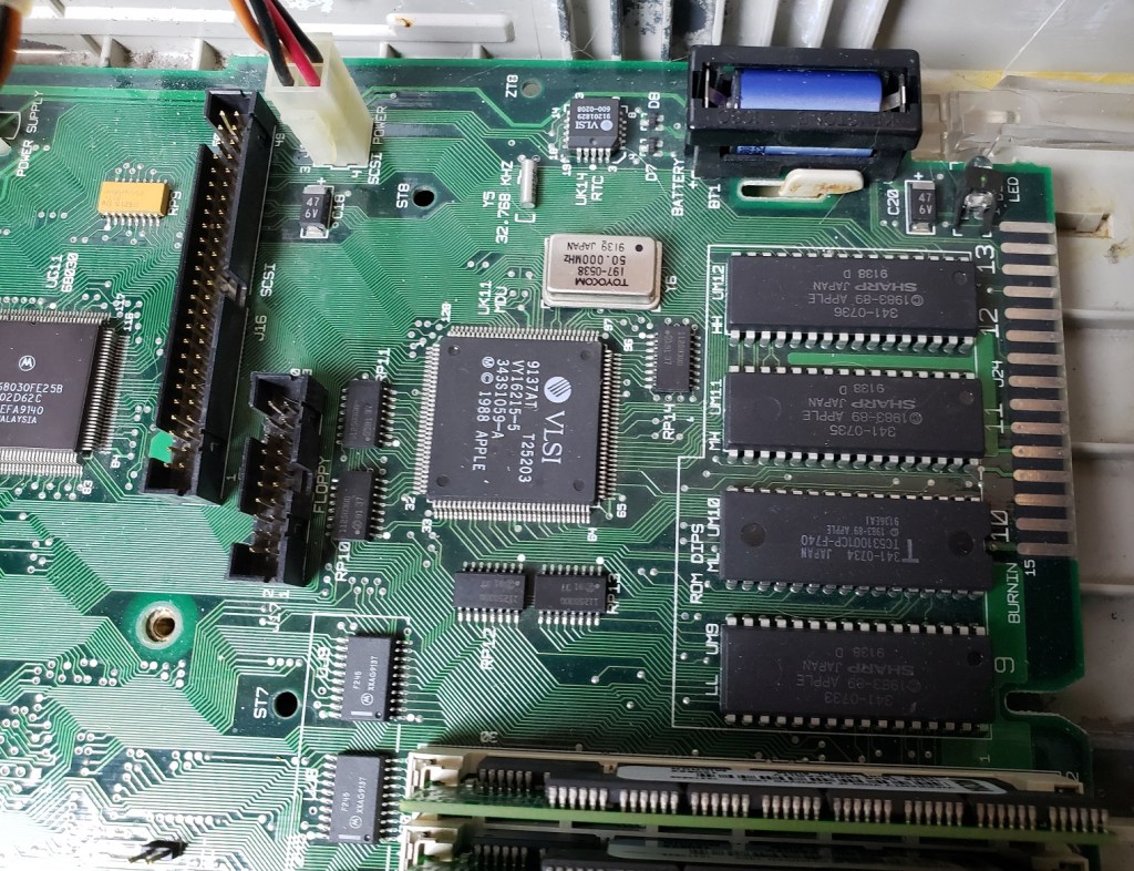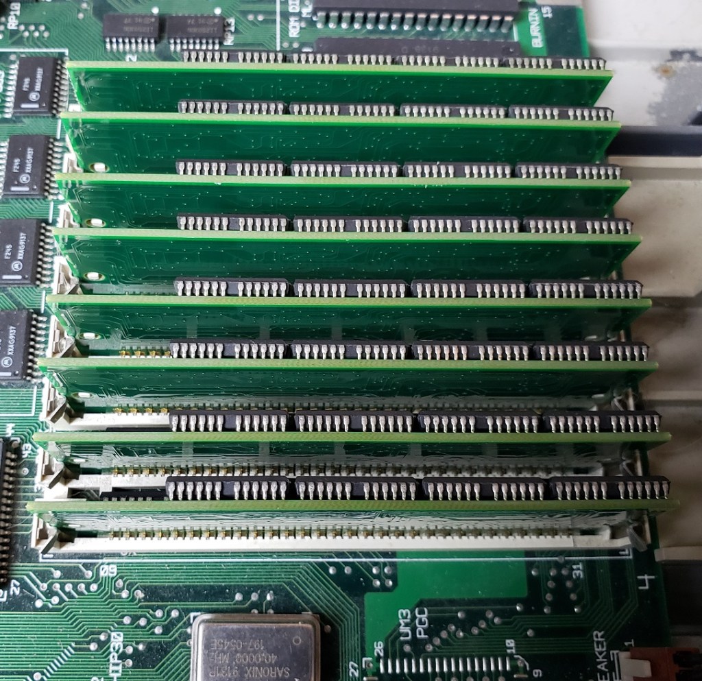 2 ) Floppy controller and Modem slots – These small expansion slots, as far as I can tell, only support very specific cards with the slot closest to the right supporting the floppy drive controller card and the slot to the left of it supporting the optional modem card.