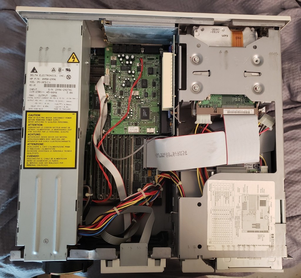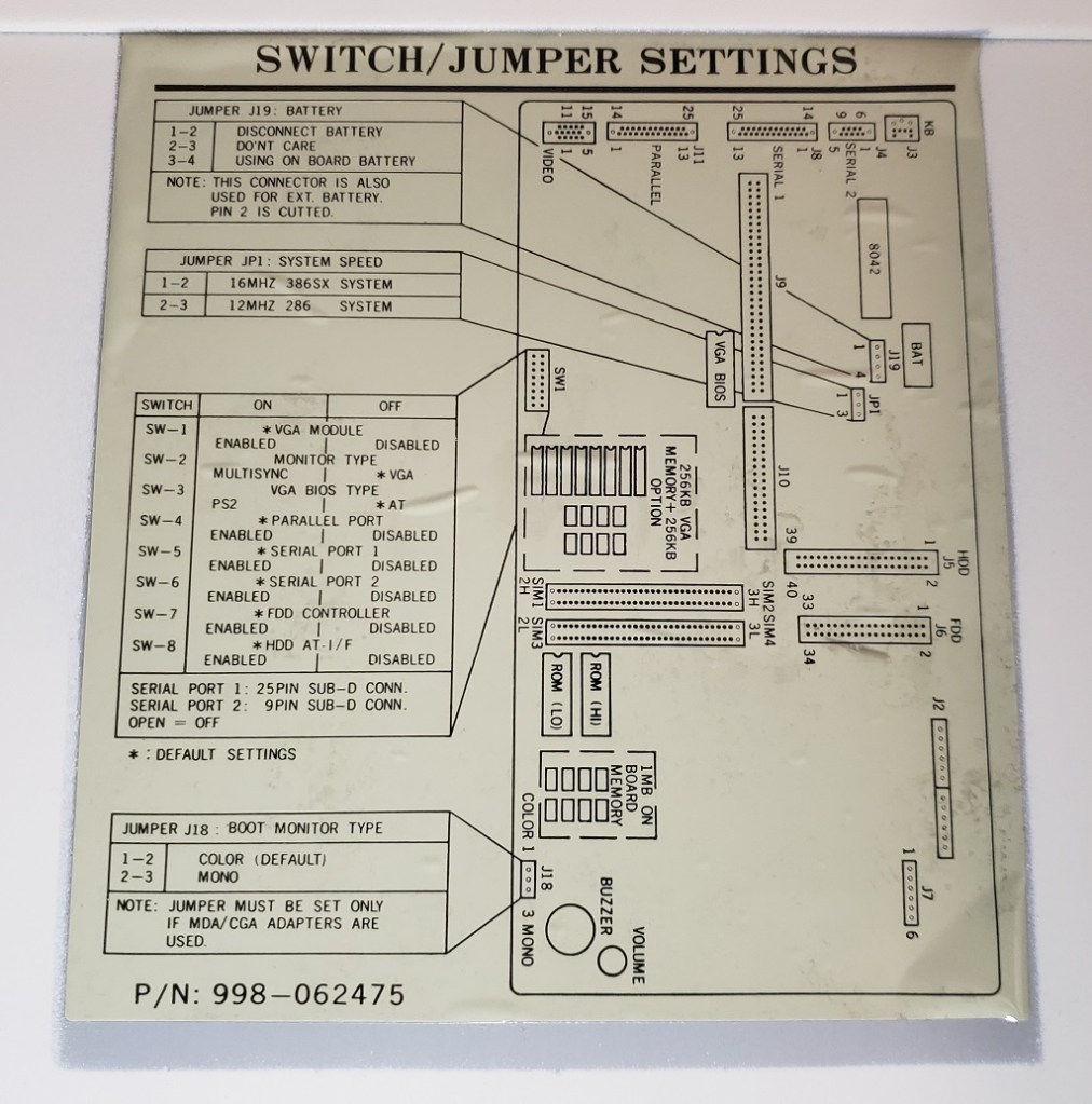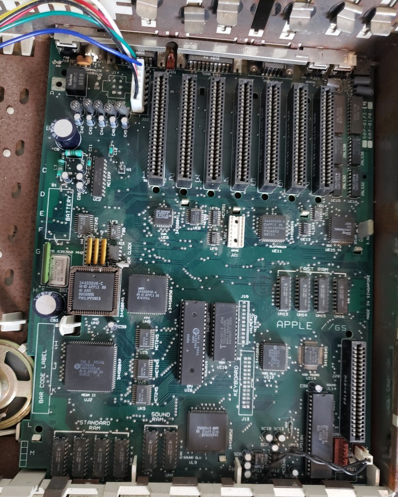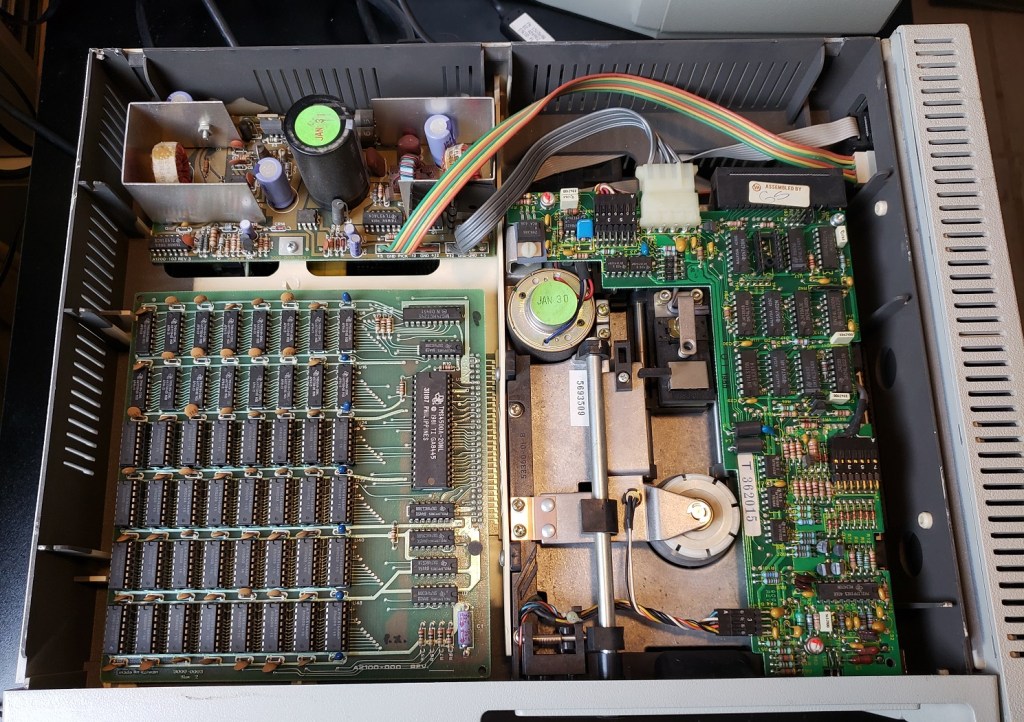 Lastly, we have the power supply card inserted in the special power slot. Besides these longer cards, I have seen PCjrs with shorter cards. I have been told the longer power cards supply more wattage but I can’t confirm that. As a side note, you can also find several modern replacements for this card which, If you’re a PCjr fan may be a wise upgrade.
