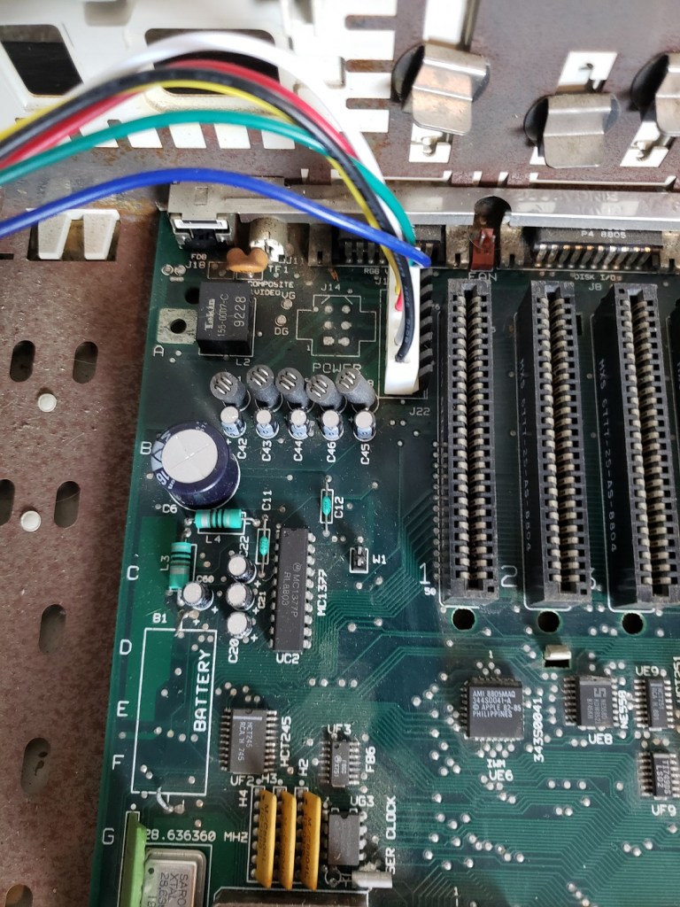 - A = “Audio” which is a standard RCA-style audio output for the enhanced PCjr 3-channel sound