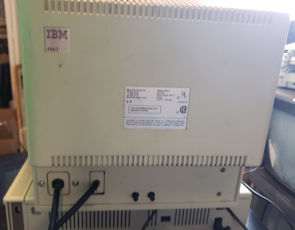 The 14-inch IBM 4863 TTL monitor is the official monitor for the PCjr. It has a standard three-prong power connector attached to the case as well as a special connector for attaching to the proprietary display port on the PCjr. Unfortunately, this meant the monitor could only ever be connected to the PCjr. Fortunately, unofficial adaptors have been made for the 4863 that allow them to connect to other computers and cards that use the standard 9-pin digital TTL connector.