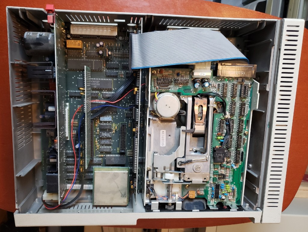 This is the Quadram expansion unit and it adds more memory (I believe 384k) as well as a much-desired second floppy drive.