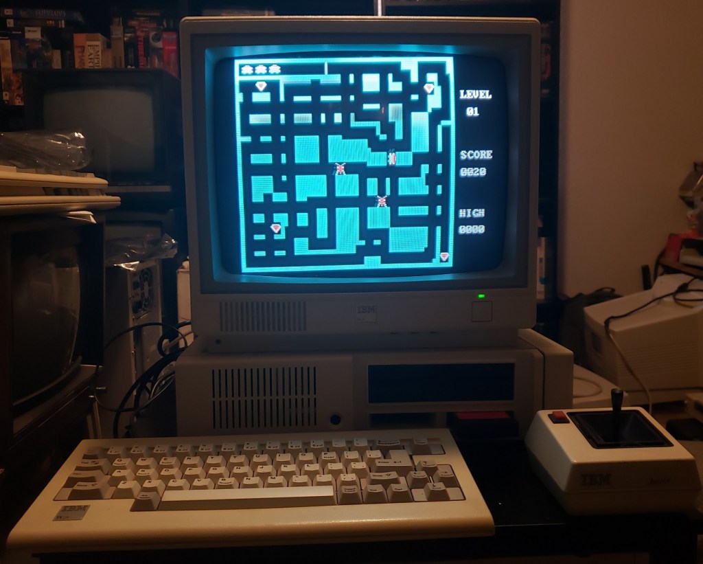 The IBM PCjr certainly is unique and a cool-looking little machine. I can definitely see its popularity with IBM collectors. I do have to say in no small terms that the IBM PCjr sucks…..a lot. Remember at the beginning of the article when I said IBM made an IBM PC compatible that wasn’t really PC compatible? I wasn’t lying. Due to how various things were implemented in the PCjr, compatibility with DOS and DOS games and applications is spotty. For instance, I wasn’t able to get my Jr to boot into my DOS 3.3 floppy and “see” the full 640K of memory until I ran a program called PCjrconfig and used it to patch and modify my DOS disk. Before running this program and essentially patching the disk my Jr could only utilize 128K under DOS which is very limiting as far as what games you can play. Even after patching DOS, I ran into several games that just would not play or would display incorrectly even in 4-color CGA mode. Games like Rogue wouldn’t even start and Paratrooper and Airborne Ranger gave various graphical glitches. Even running the benchmark program MIPs gave horrible visual glitches, though I’ve seen it run on a PCjr before so perhaps it requires a specific version. The newer game Planet X3 has a PCjr 16-color mode and it ran and looked fine although for whatever reason it had no sound.