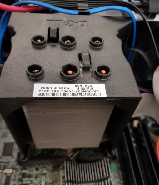 CPU – Removing the heatsink on the XPS 420 is actually super easy and way more convenient than a standard Intel LGA 775 heatsink and fan. The first step is removing the two screws on the left and right side of the heatsink. and then lift the heatsink up and off.