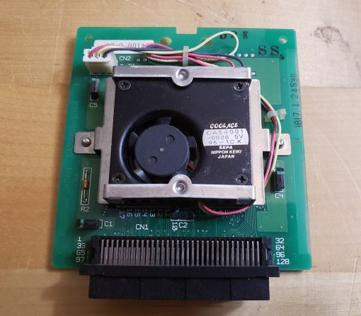 Here is the opposite side of the daughterboard. There are three proprietary looking connectors of types unknown to me. The bottom most looks like an Apple NuBus connector but I can’t confirm anything. Information on the FM Towns computers in the west is fairly scant when it comes to the fine details and the best I could find pertaining to these expansion slots was just a reference to the machine having three “bus slots”.