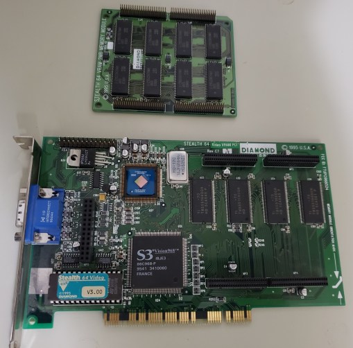 For expansion cards I decided to install an S3 Vision 968 video card with the ram expansion increasing the cards video memory to 4MB. The Vision 968 is the business equivalent of the Trio64 and although it may be a little slower it does support more memory and is said to have a little better image quality. Compared to the on board GD5434 the Vision 968 may actually be a little slower but it does support more memory allowing me to run things at higher resolutions if I choose. Depending on your needs or if you need more free PCI slots you would probably be fine with the on board video.