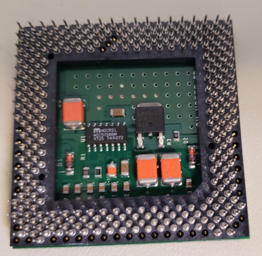 The overdrive chip uses a pin adaptor and a voltage regulator to safely install into and run on a socket 5 motherboard. Since socket 5 motherboards do not support the lower voltages and split voltages of later Pentium CPU’s the voltage regulator on the Overdrive chips is required. The BIOS on my Vectra VL on boot detected the Overdrive as a 133MHz chip but running CPUID confirmed the CPU was running at 200MHz.
