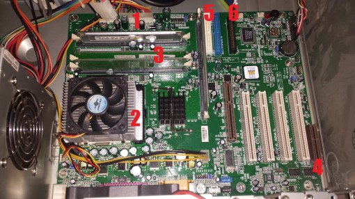 The Legend QDI Plantinix 4x has one of the most unusual RAM slot orientations I’ve seen in a post 1980’s motherboard with two slots being in a typical close side by side configuration close to the CPU and another slot spaced further away with a fourth slot being completely perpendicular to the other three. I’m not sure why they went with this setup other then maybe as a space saving feature. This board is also very picky about RAM as well as placement and sizes. RDRAM requires it be installed in sets of two and any unused slots require a “CRIMM” or dummy RAM be inserted as a terminator.