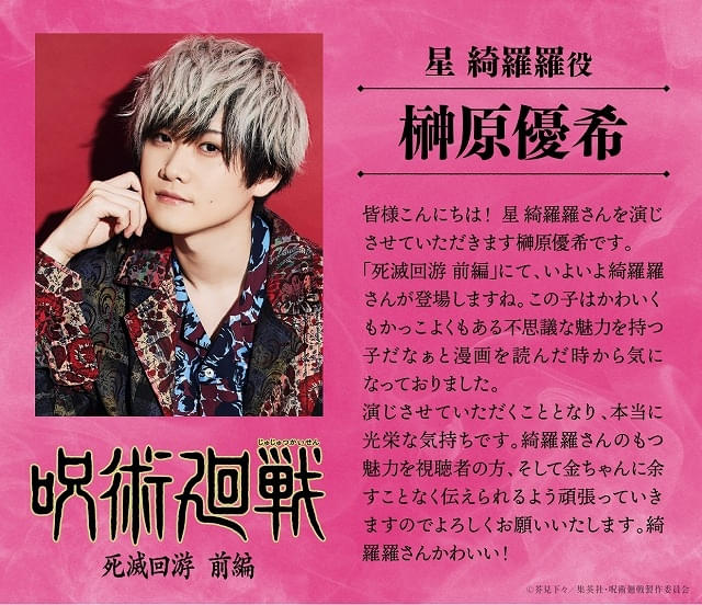 追加キャストは、停学中の呪術高専3年・秤金次役を中井和哉、星綺羅羅役を榊原優希、「死滅回游」の泳者(プレイヤー)として新たに覚醒した現代の術師・日車寛見役を杉田智和、髙羽史彦役を鶴岡聡が担当。受肉して復活した過去の術師であるレジィ・スター役を青山穣、死滅回游の各泳者に1体ずつ憑く式神・コガネ役をニーコが担当する。