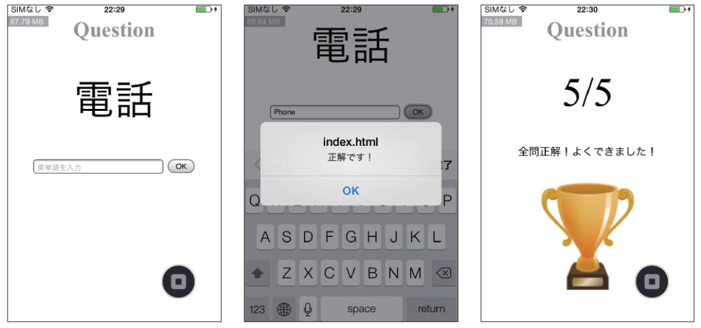 なお本アプリはCordovaを使用しているため、『Monaca for Study』上で動かす必要があります。