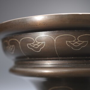 落ち着いた金属肌に銀象嵌の繊細なきらめきが静かな華やぎを添えています。