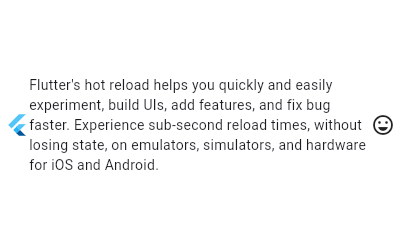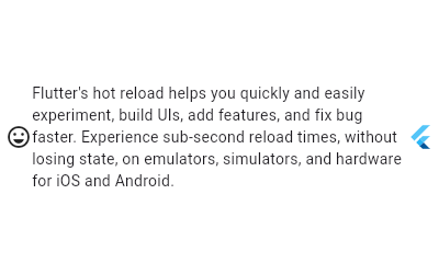 Text("Flutter's hot reload helps you quickly and easily experiment, build UIs, add features, and fix bug faster. Experience sub-second reload times, without losing state, on emulators, simulators, and hardware for iOS and Android."),