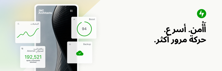 - Jetpack Boost – ارفع سرعة موقعك على الويب. استمتع بمزايا الأداء نفسها، مثل: مواقع الويب الرائدة في العالم، ولن تحتاج إلى أي مطور.