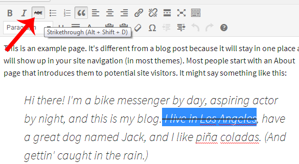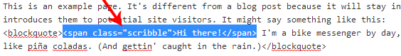 There are two ways to define a scribble. You can add scribbles via the strikethrough icon in the WYSIWYG visual editor(see screenshot). You can also add class “scribble” to the target html element (see screenshot).