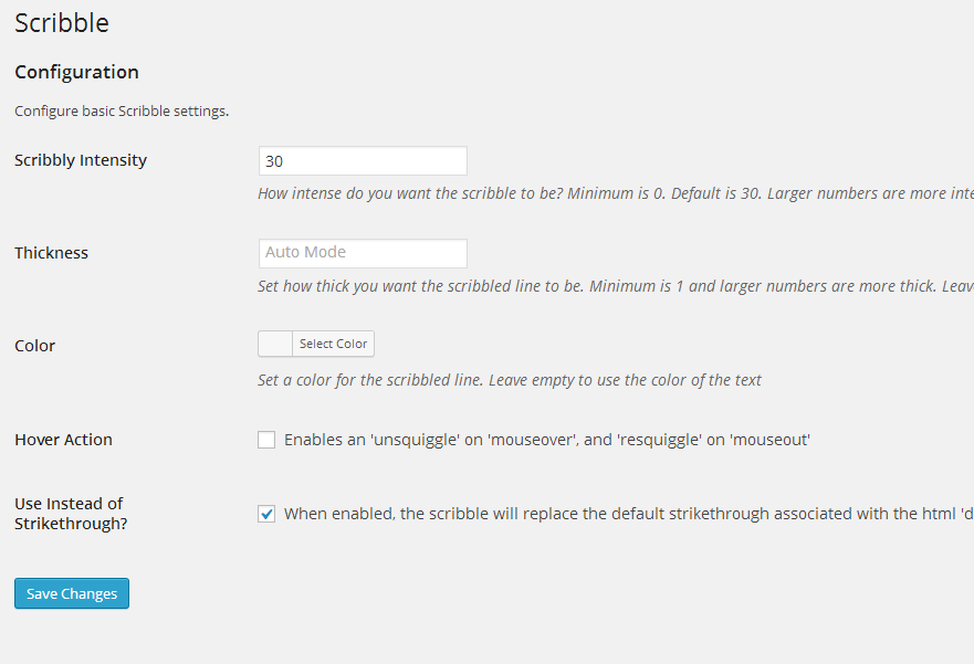 Scribble out your content with a squiggly line instead of a boring strikethrough. You can easily customize your scribble settings via your WordPress admin > Settings > Scribble.