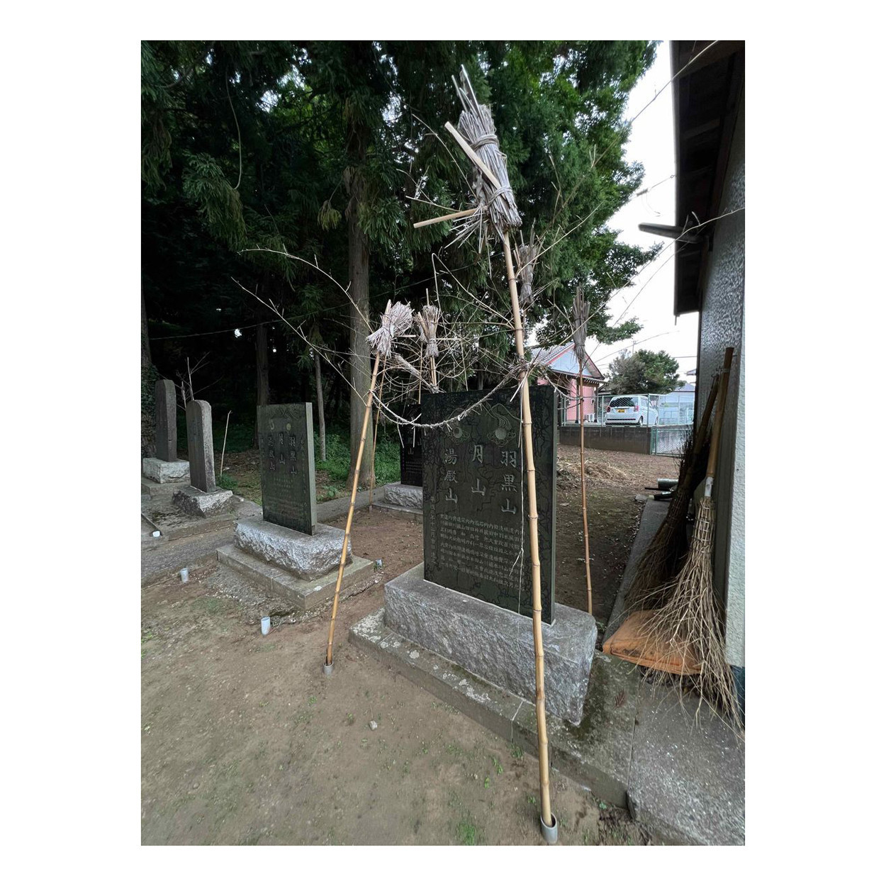 鳥居をくぐって右側。出羽三山信仰!そして梵天!あったー。こんなところで見るとは。