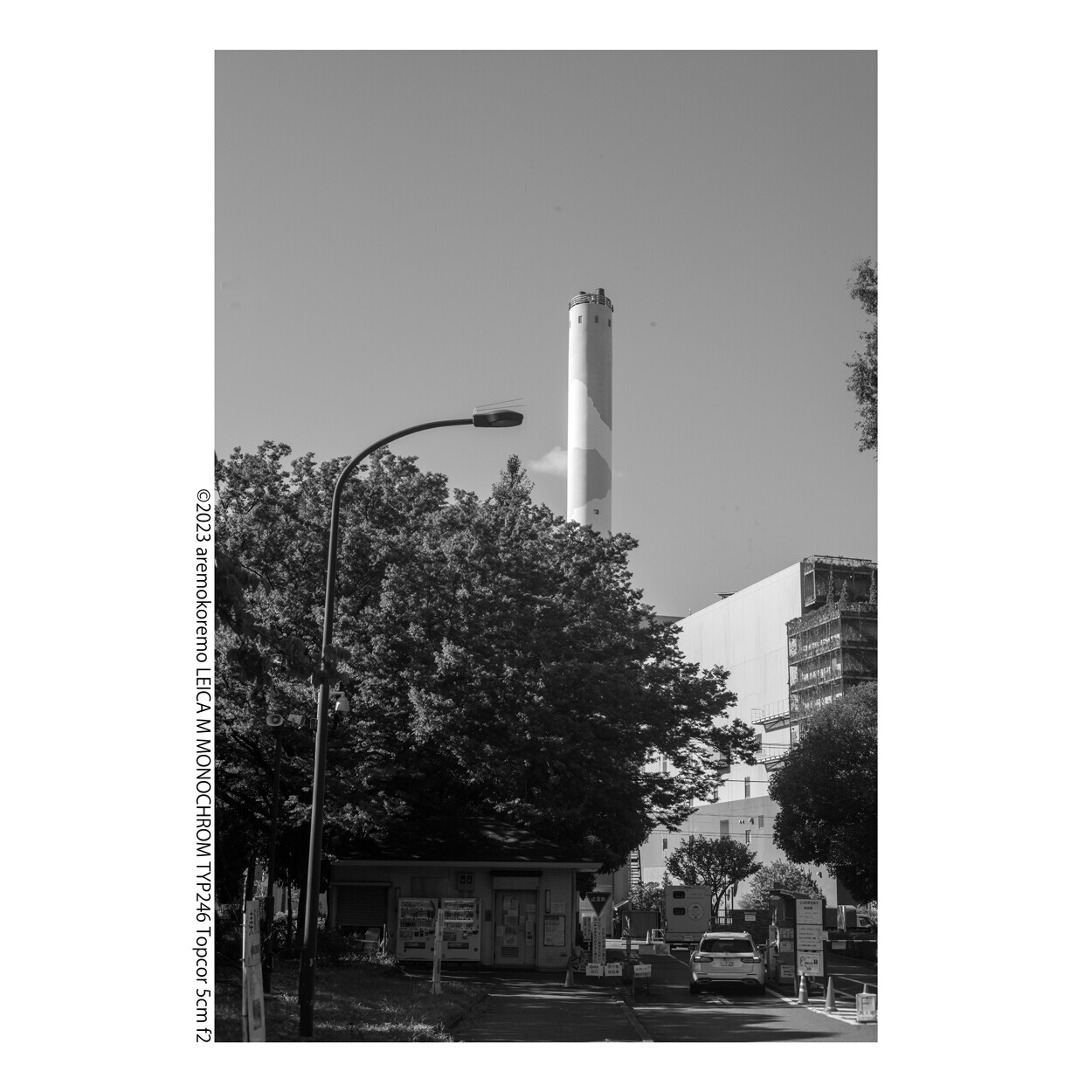 f8と1/1000。世田谷区のゴミ焼却場の煙突。