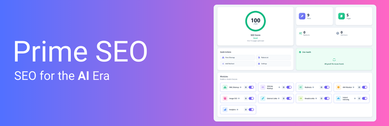 Since 2026, Prime SEO has been built from the ground up for the new era of search — where AI assistants cite sources and answer questions directly. Control how AI sees your content with LLMs.txt, manage 16+ AI crawlers, and optimize your site for both humans and machines.