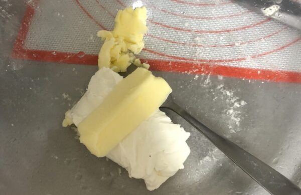 - バターとクリームチーズを混ぜ合わせる
