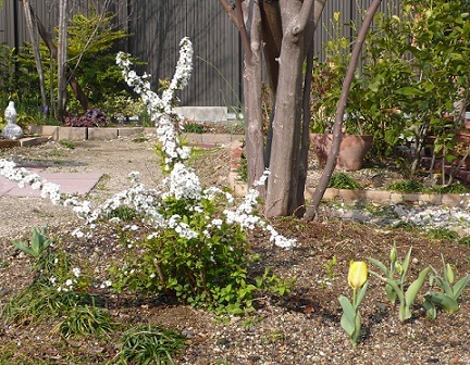 ぼくのテレパシーで受信したところによると、うちの庭に、雪柳の白い花が咲いたらしいよ。となりの小さな黄色いのは、チューリップだって。去年のチューリップの子どもだね。ねーちゃんの理想では、エゴノキの下の雪柳の白い花が、ぱぁ~っと咲くでしょ、雪柳が終わったら、エゴノキの白い花が咲く時期がくるの、素敵だよねぇ!・・・だったらしい。ぼく、雪柳をずいぶん短くしちゃってたからねぇ・・・。悪かったねぇ。来年が楽し...