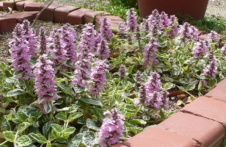 ぼくの庭に花が咲いてるらしいよ。これは、ぼくが座布団にしていた葉っぱだね。アジュガ、っていうらしい。へぇ~~、かわいい花じゃん。咲いてよかったねぇ。え? ぼくが食いちぎらなかったからなの?つまり、ぼくのおかげ、ってこと?でへへへ。立ち上げ花壇、ぼくが飛び乗って遊んだ場所。穴掘りもしたよ。だから、チューリップの球根が減った?でも、咲いてるね、よかったね。ミヤコワスレも咲いた?よかったねぇ。ネーチャン...