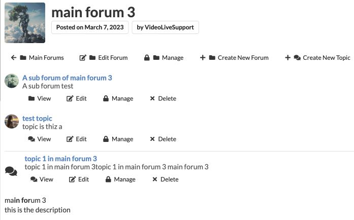 Forum View: Can contain sub-forums, topics; can have thumbnails