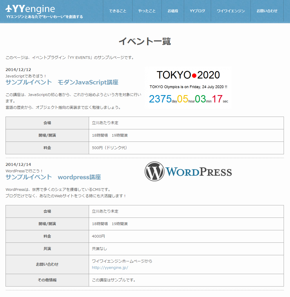 /yy-events/directory to the/wp-content/plugins/directory - Activate the plugin through the ‘Plugins’ menu in WordPress