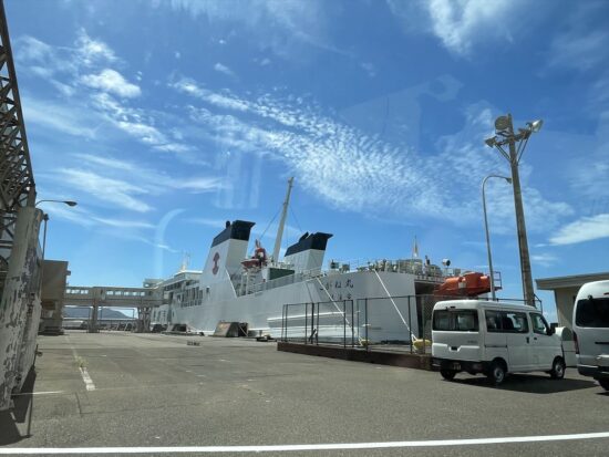 今回は直江津港から乗船したため、行き帰りは「こがね丸」というカーフェリーでしたが(写真8)、船内はとても広く、また自動販売機で飲み物や軽食も買うことができたため、手ぶらで乗船しても問題ない印象でした。船旅もより豪華に楽しみたいという方は、新潟港から出港している「ときわ丸」や「おけさ丸」に乗船されるのがよいでしょう。詳しくは佐渡汽船のホームページをご覧ください。