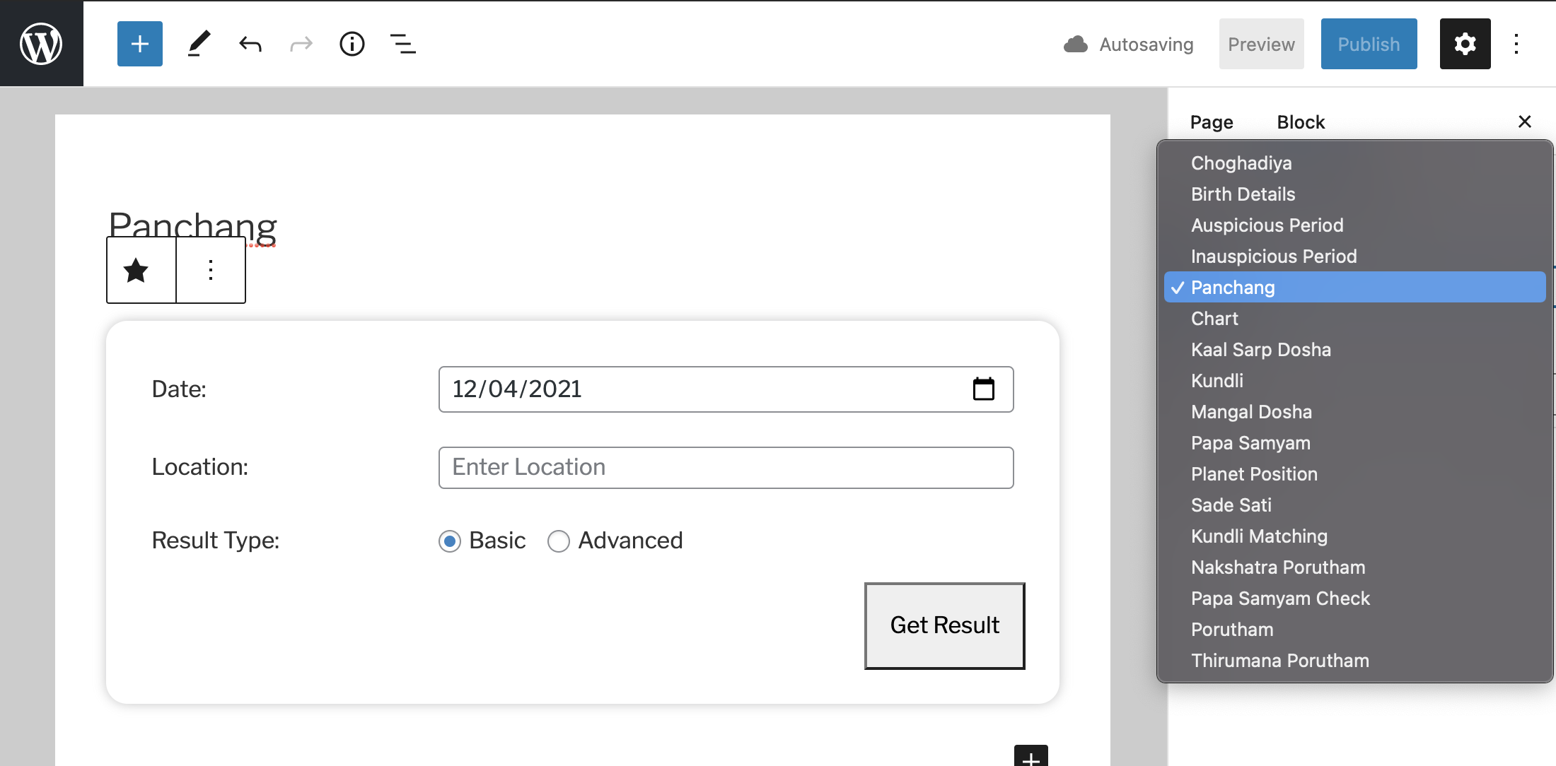[astrology]shortcode andAstrology Reportsblock will be available in your wordpress editor.