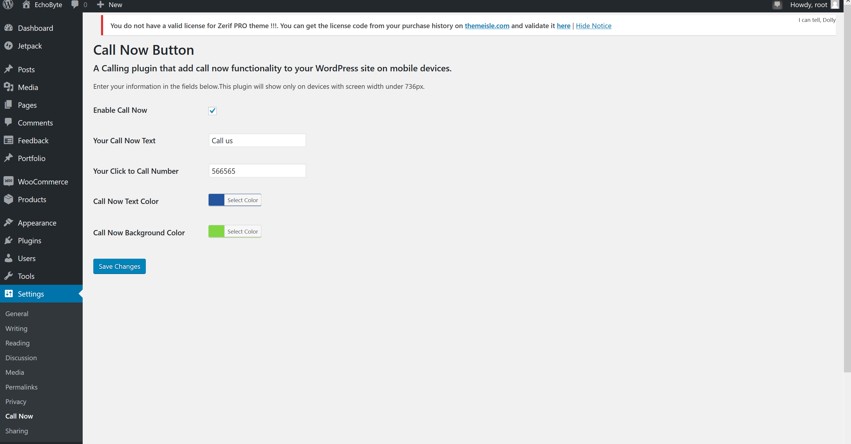 - Go to ‘Settings’ > ‘Call Now’ and check the box “Enable Call Now” for call button and enter text your phone required fields.