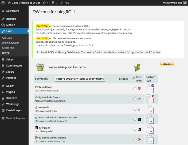 This plugin convert the favicon.ico from the blogroll sites into PNG images and save this in a local cache file. The conversion process works just on the admin-page, visitors don’t have to waste time to wait for favicons from remote websites. If a blogroll entry was added or modified this single Link will be updated.
