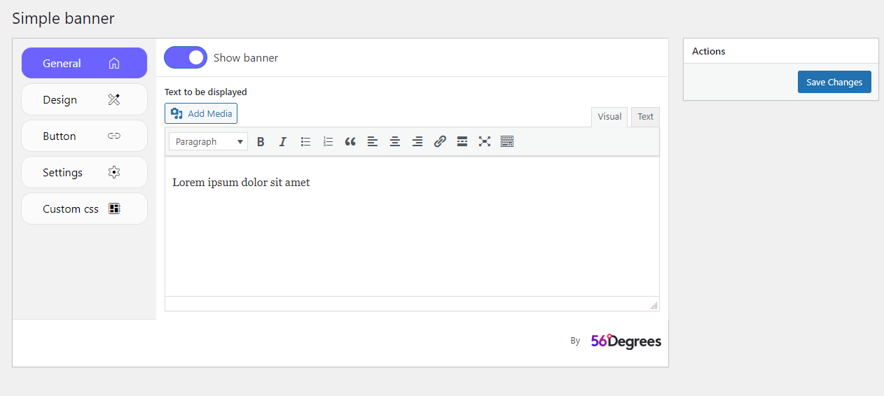 - Configure the Banner: Navigate to the Simple Banner settings page in the WordPress admin panel. Customize the banner’s appearance and content using the provided options.