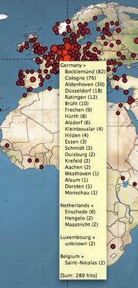 The IP City Cluster Plugin (IPCCP) generates a geographical cluster map based on where from people access you website (or to be precise: based on the IP they got from their provider). It requires a statistics plug-in (that keeps a database or logfile) which keeps track of the IP. Key features include a preview with a lightbox way of zooming, image maps for city names and hit counters for both the preview and zoomed image, template output, smart clustering and user control over color, sizes and such.