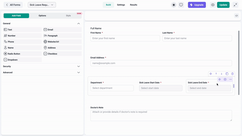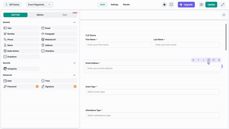 See your form builder creations in real time as you design them, ensuring the layout and functionality meet your expectations.