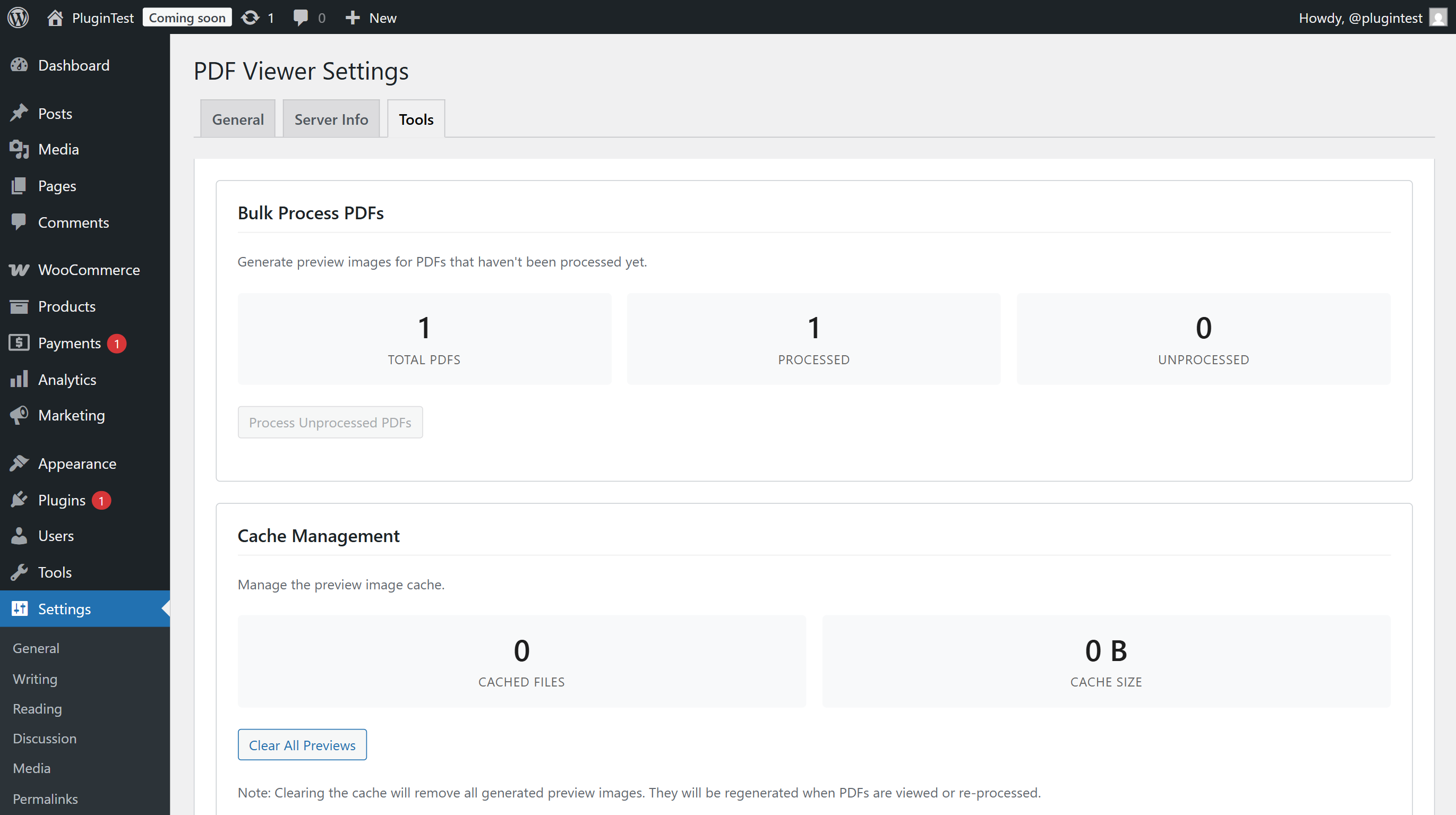 - Check the Server Info tab to verify your server can generate previews