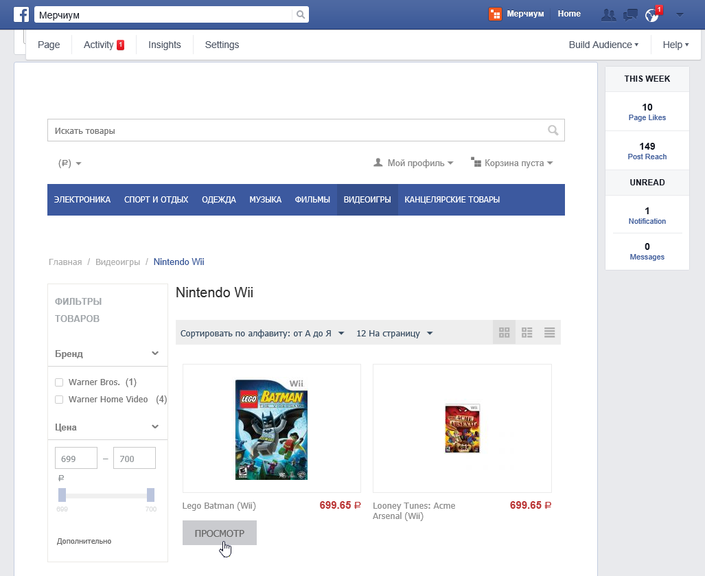 Магазин на Мерчиуме в Facebook (демо-магазин facebook.com/MerchiumRU)
