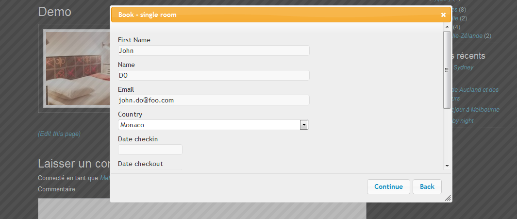 MP Booking is a WordPress plugin which provides a button that opens a simple form for hostel / hotel reservations.