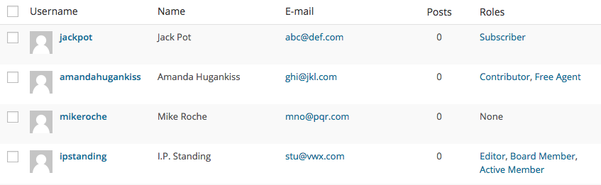 User edit and Add new user screens will display a checklist of roles instead of the default role dropdown. The main user list screen will also display all roles a user has.