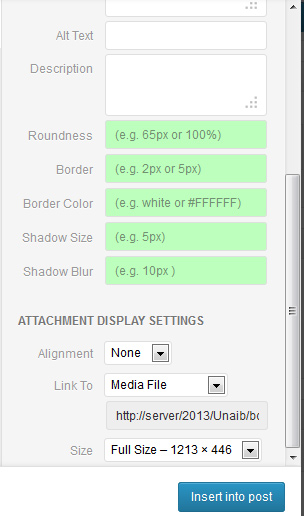 No more photshop skills required to give your images a fancy look. With RoundIt you can make your images Round, set Round Corners, add border with color and add a shadow to your image. The plugin adds these features in the media manager where you upload the image files. You can set different roundness, border or shadow effect settings for different images by entering the desired input in the new fields.
