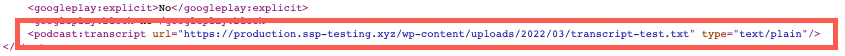 Plugin automatically adds a podcast:transcript tag to your RSS feed.