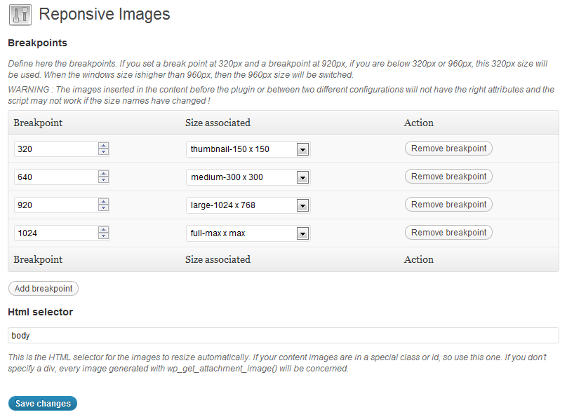 This plugin generate images with attributes for the responsive images in your content.