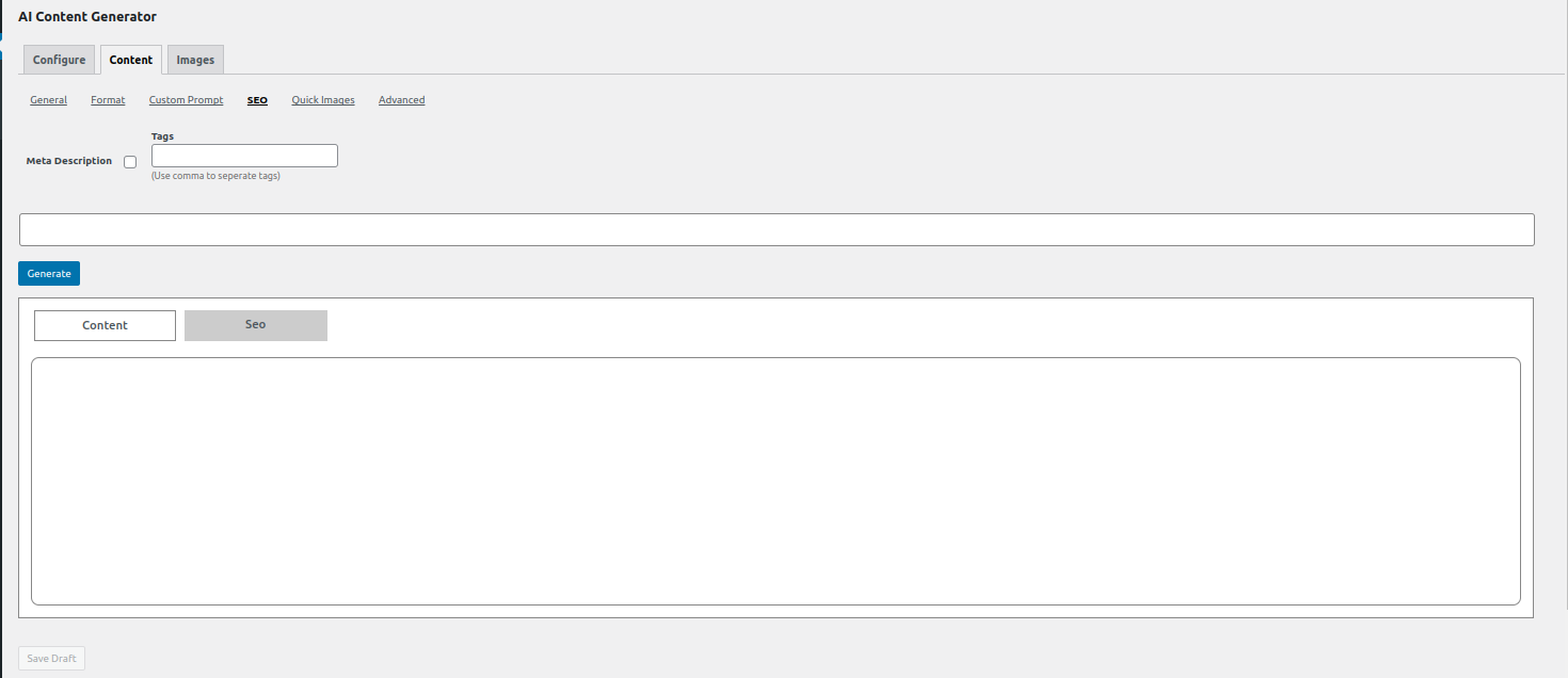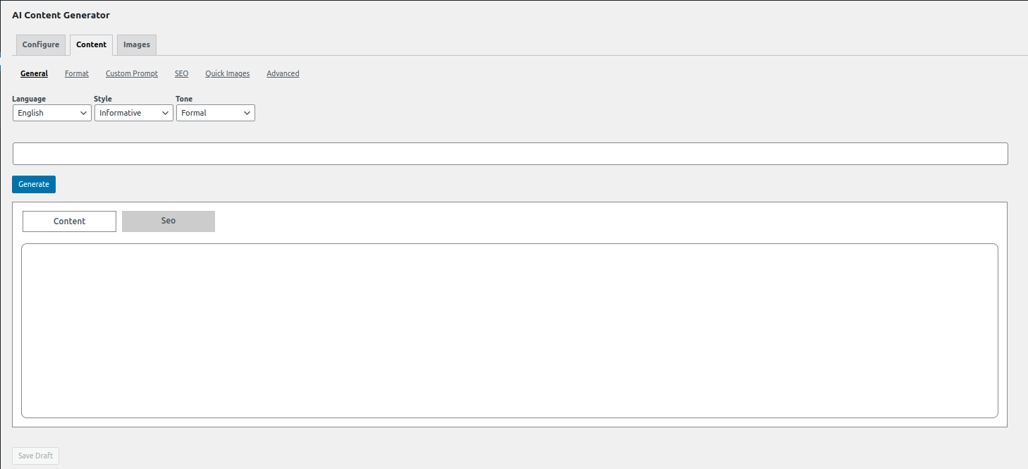 The AI Content Suite Plugin is a powerful tool designed to enhance your content creation process within WordPress. This all-in-one solution combines the capabilities of an AI Content Writer, Auto Content Writer, Image Generator, and SEO Content Generator, providing you with the tools to generate high-quality, engaging, and optimized content effortlessly.