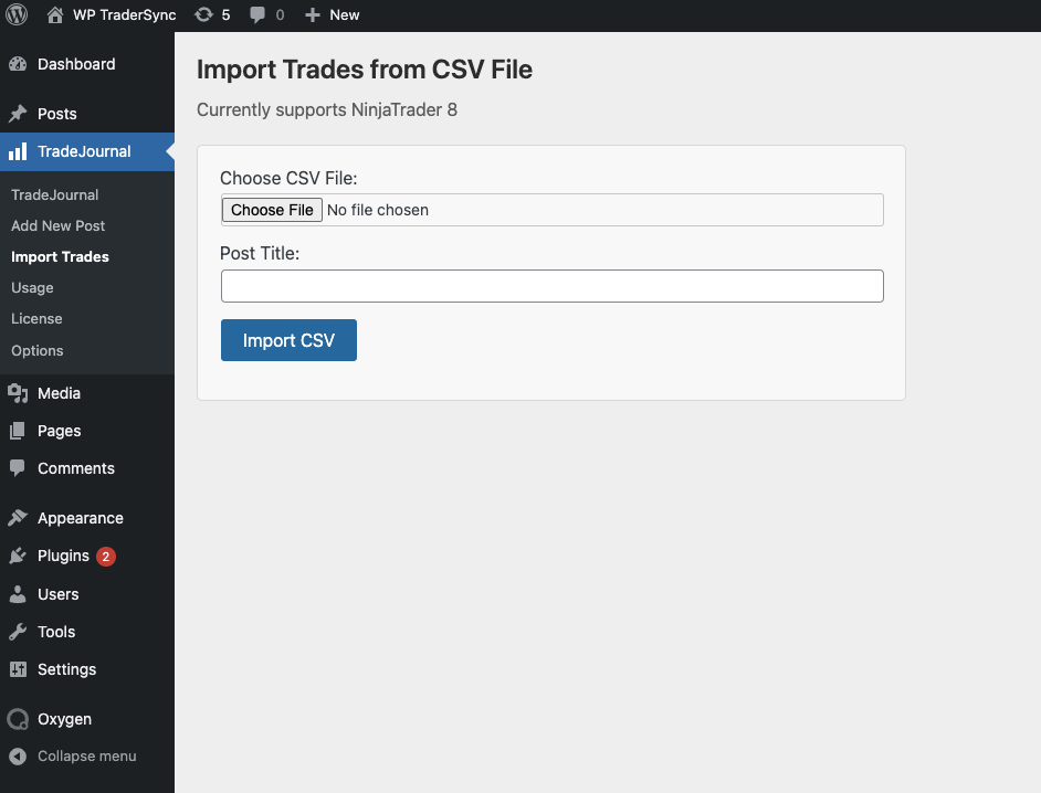 - Create a new post and upload a CSV file containing trades from NinjaTrader.