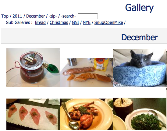 The UnGallery default view with subdirectories/subgalleries, breadcrumbs, zip, and search available.