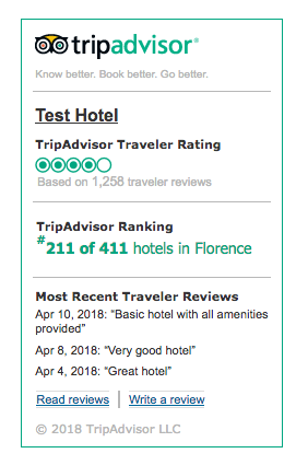 • Trip Advisor Review – Displays one of several Trip Advisor widgets