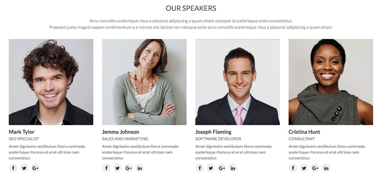 • Speakers – Displays a list of people with names and surnames