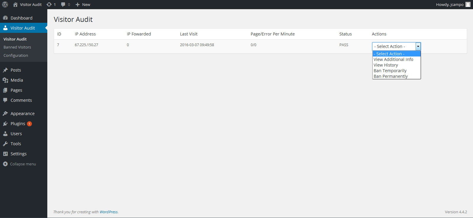 Visitor Audit is a small/lightweight plugin designed to give you insight into your current visitor’s behaviour. It will provide you with a simple view of what computers are currently connected to your wordpress instance and what their recent page views are. Geolocation, browser and OS information is provided to make traffic analysis easier. Page load benchmarks let you easily determine your visitor’s experience. An automated slow page report can be configured to email you anytime the visitor experience degrades. Visitor statistics are instantly compiled to help you determine if a visitor is human/machine and useful/malicious. With a simple click you can temporarily or permanently ban any IP address. Automated banning functionality is present but is extremely simple and is not recommended.